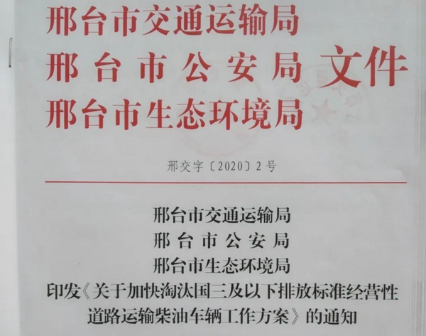 ▎河北省邢台市:6月底前淘汰全部国三柴油车