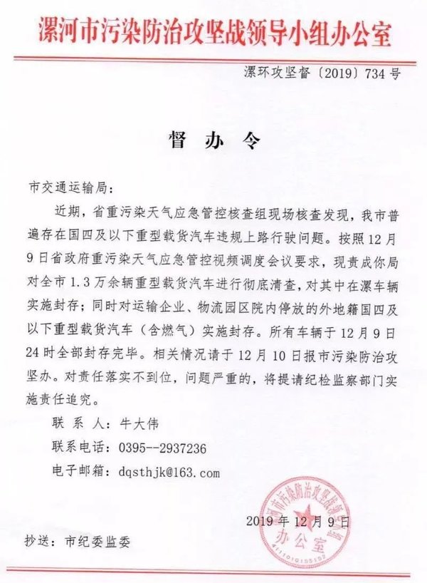 去年年底,为了应对大气污染,河南漯河市宣布对国四及以下货车实施封存。