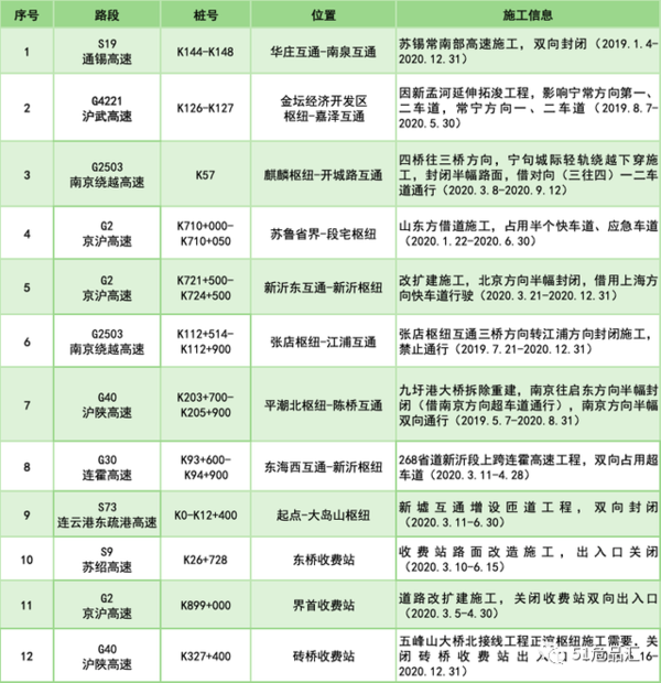 清明期间,省内有G40沪陕高速、G4221沪武高速等12处高速公路施工路段、节点,请注意现场交通标志提示!清明期间高速公路施工路段: