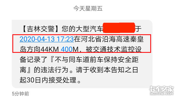 【卡车之家 原创】违章对于每一位驾驶员来说应该是必须经历的事情,比如超速、压线、闯禁行之类的行为,一个不注意就得吃到罚单。但最近卡车之家的一位老司机老张在收到违章信息提醒时,却感觉脑瓜子有些“嗡嗡”的,到底是什么样的违章,让他有了如此感觉?
