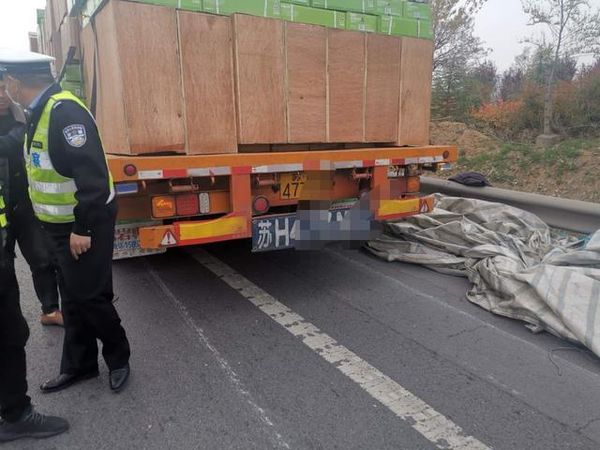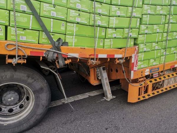 据该苏H477**驾驶员张师傅介绍,他们从江苏出发拉的这车货物准备送往甘肃,行驶中感觉车子突然沉了一下,牵引车有点后缀,赶紧停车查看,发现挂车车梁变形,不敢动弹,赶紧报警求助。