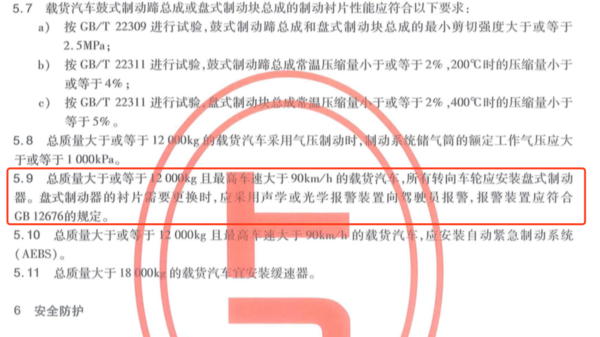 从《GB7258-2017》7.2.6和5.11条(今年5月1日开始实施)当中我们发现,最高车速大于或等于90km/h的牵引车辆转向轴的所有转向车轮应安装盘式制动器、危险货物运输半挂车、三轴的栏板式和仓栅式半挂车的所有车轮,都应配备盘式制动器。