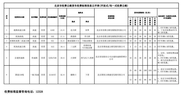 北京公布了2020年高速货车收费新标准,具体如下。