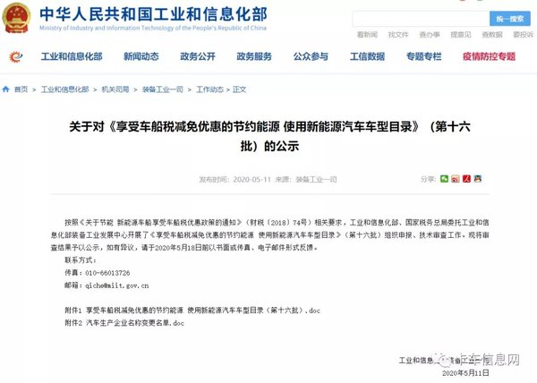 5月11日,工信部下发关于《享受车船税减免优惠的节约能源 使用新能源汽车车型目录》(第十六批)的公示。