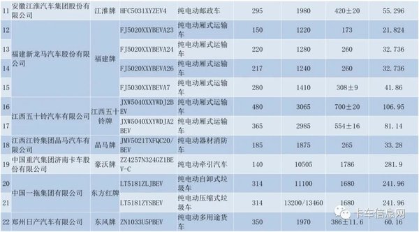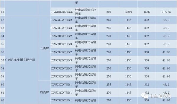 纵观整个批次,纯电动商用车货车公示115款,占比60.84%;天然气货车70款,占比37.04%;汽/柴油重型商用货车2款,占比1.06%;燃料电池货车、插电式混合动力货车各1款,占比0.53%。由数据可以看出,纯电动货车和天然气重卡是本批次公示中的热门车型。