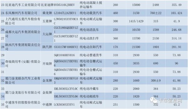 另外,分企业来看,一汽解放在公示车型数量方面位居榜首,共有51款车型上榜。其次,集瑞联合重工有限公司、南京金龙客车制造有限公司各有13款车型上榜,位居第二;广西汽车集团有限公司旗下五菱与创菱两个品牌上榜了12款车型,排名第三。