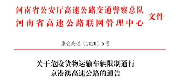 【卡车之家 原创】2020年5月17日0时至8月31日24时,在京港澳高速公路采取限制危险货物运输车辆通行的措施。