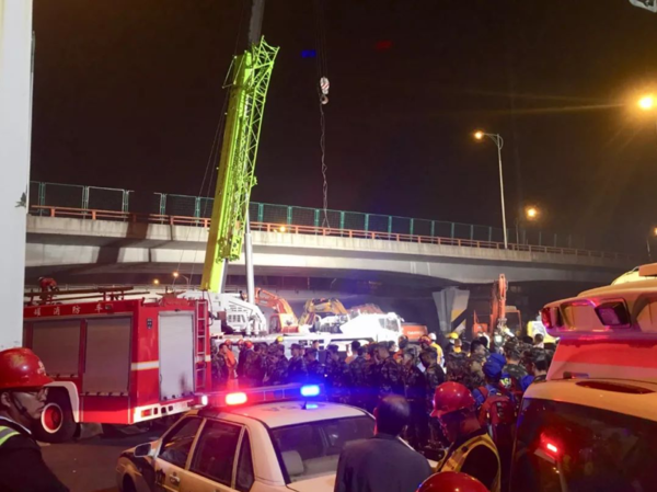 经现场搜救确认,桥下共有3辆小车被压,其中一辆系停放车辆(无人,驾驶员已找到),另外2辆车上共有3人,已死亡。侧翻桥面上共有5辆车,其中3辆小车、2辆卡车。事故造成3人死亡,2人受伤。