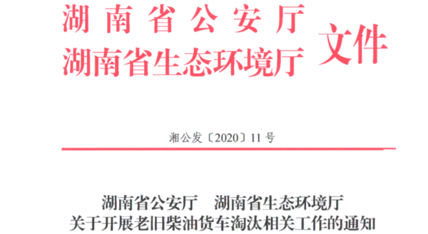 日前,湖南省公安厅和湖南省生态环境厅联合下发《关于开展老旧柴油货车淘汰相关工作的通知》,要求各地加强老旧柴油货车淘汰力度。