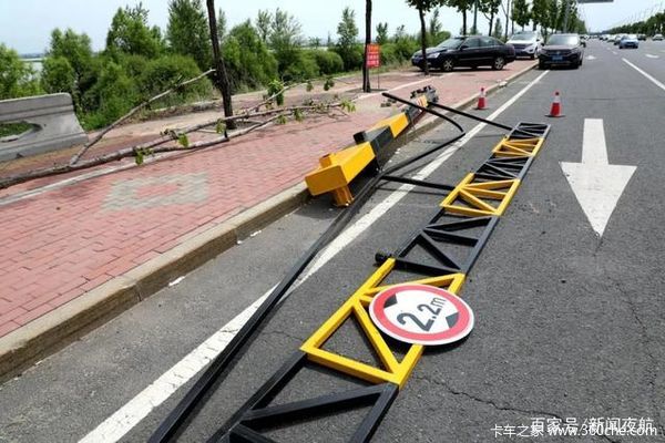 6月13日凌晨,一名大货车驾驶人违反禁行规定在松北区滨水大道行驶时,由于装载货物过高将仅安装三天的限高杆严重撞损,违规驾驶人不仅破坏了沿线道路的交通秩序,还将赔付十余万元的损失,得不偿失。