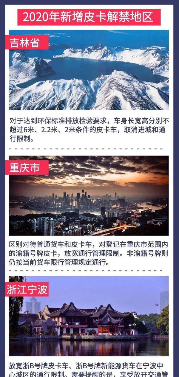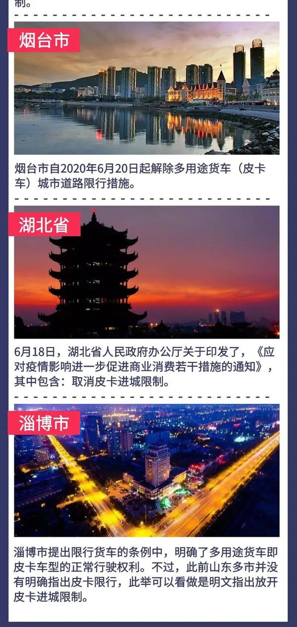除了以上今年新增的皮卡解禁地区外,目前国内明确放宽皮卡进城条件的地区还有:济南、秦皇岛、唐山、张家口等,且还有包括海南、青海等地对皮卡车原本也没有严格的限制。小编相信,未来将会有更多的地区出台放宽皮卡进城限制的政策,供促皮卡文化的发展。