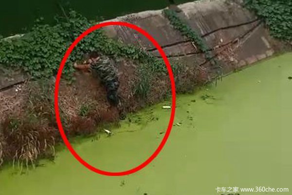 【卡车之家 原创】超载的货车司机为了躲避处罚竟然做出这种事……他直接当着交警的面跳进了路边的小河沟!