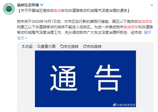 亳州市生态环境局表示,将在10月1日以后开展综合执法,对不符合排放标准的车辆禁行曝光、处罚并追究相关人员和单位法律责任。