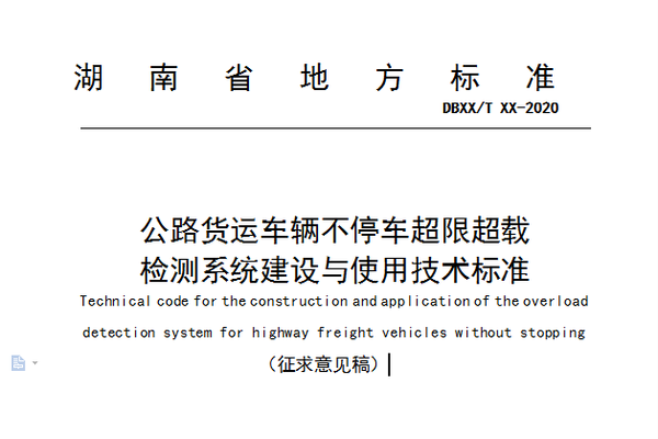 日前,湖南省市场监督管理局发布《公路货运车辆不停车超限超载检测系统建设与使用技术规范》(DB43/ T1817—2020)。据了解,该《规范》将于9月25日正式实施。