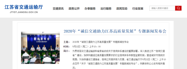 9月22日,在江苏省交通运输厅召开发布会上,江苏省交通运输厅政策研究室主任、厅新闻办主任周体光表示:目前,江苏交通建立健全了覆盖公路水运工程建设、道路水路运输、港口经营、船舶过闸、交通执法、安全生产等重点领域信用管理制度,并在多个领域推进信用联合奖惩、完善信用修复机制。