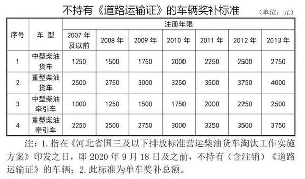 【卡车之家 原创】临近2020年底,国三淘汰进入冲刺阶段,不少卡友最关心的莫过于车辆淘汰补贴了。近日,河北石家庄、黄骅市相继发布国三补贴方案,有需要的卡友赶紧看一看自己淘汰车辆的话能拿多少补贴。