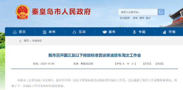 秦皇岛:年底淘汰共7018辆国三车