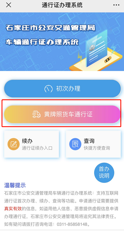 此前,石家庄市为解决货车司机“办证难”问题,开发了互联网黄牌照货车通行证办理系统,没有办理“车辆通行证”的卡友一定要抓紧时间办理!