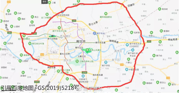 2020年12月1日起,南宁市将分两个阶段,全日禁止以柴油为燃料的国三及以下排放标准的货车在以下区域内通行,有效期5年。