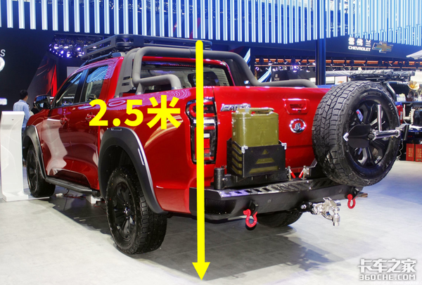 通过上面这一条就能给看出,国家对于皮卡装载货物有着严格的管理措施,接下来我们给大家一一进行解答,首先就是皮卡装载货物高度的问题,为更好方面大家进行理解,我们就用目前非常火的长城炮进行举例,细则中规定装载货物高度从地面算不得超过2.5米。