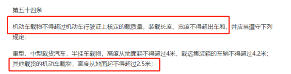 同时在宽度以及长度方面,也同样有着明文规定,我们还是以长城炮为例,它的货厢宽度为1.52米,这也就是说咱们装载货物的宽度不得超过1.52米。