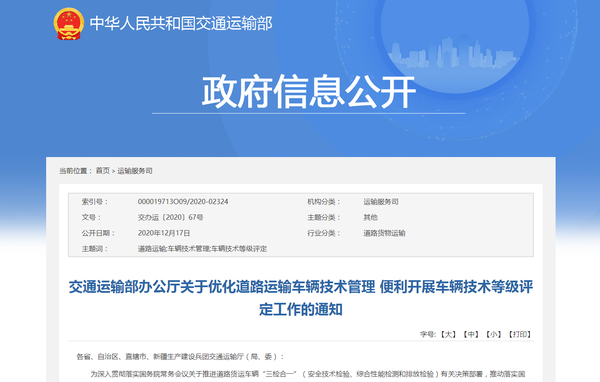 【卡车之家 原创】2020年12月17日,交通部曾公开发布《关于优化道路运输车辆技术管理 便利开展车辆技术等级评定工作的通知》(简称《通知》),《通知》中明确表明将进一步推进路货运车辆“三检合一”,促进物流降本增效。其中《通知》明确规定省级交通运输主管部门要确保2021年4月1日前完成本省道路运输车辆综合性能检测联网系统的升级改造,落实货车“三检合一”政策。