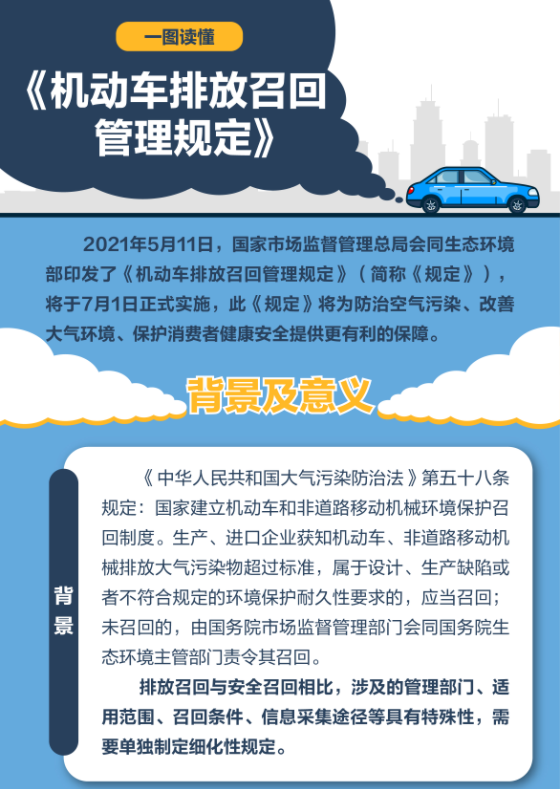 从《机动车排放召回管理规定》来看,主要针对的是排放不达标方面,法规与7月1日起实施,这也与我国国六排放标准的实施同步。对这个《规定》,你怎么看?(文/高李敏 信源/ 国家市场监督管理总局)