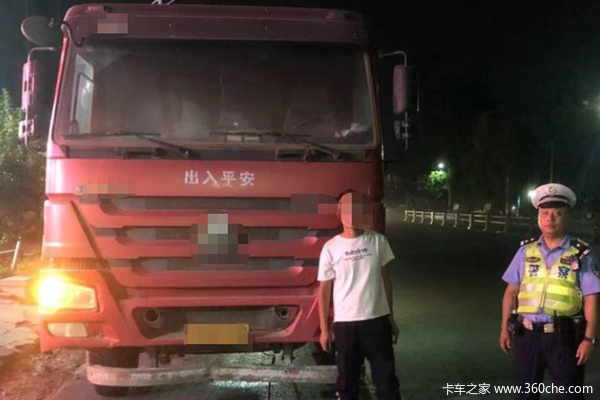 当两名货车驾驶员看到检查,快速将车辆前面遮挡号牌的布撤下藏了起来,但车辆后面的放大号抹上的泥巴还没有干。