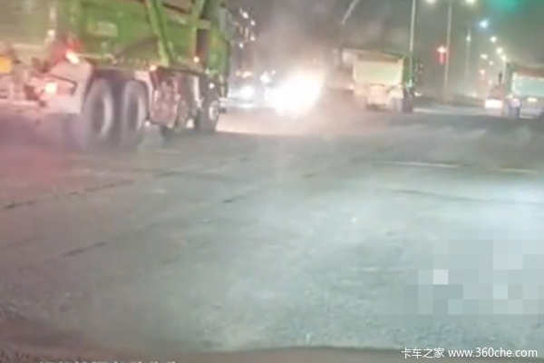 当天夜间,正在等红绿灯时,小车旁边突然窜出了数十辆车,还都是渣土车,不管此时前方的红灯,组队集体冲过去。