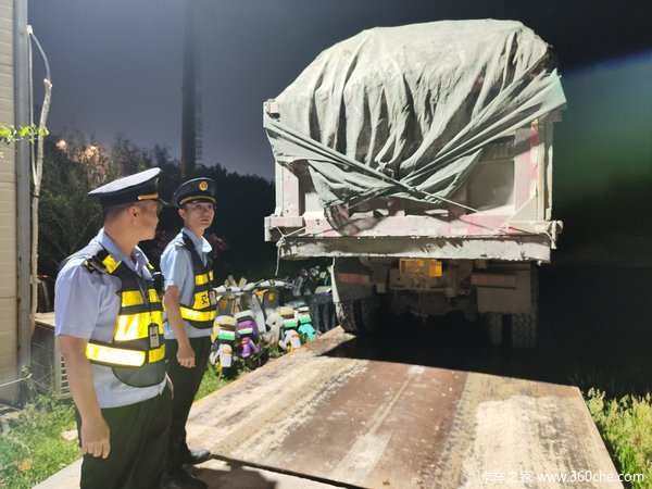 当时是凌晨2时,一辆装载黑沙土的重型货车经过圆山大道大洋村路段时声响十分巨大,引起了执法人员的注意,这辆车装载的货物高高隆起,肉眼可见,货物已经超过车厢栏板,涉嫌超限超载违法行为。