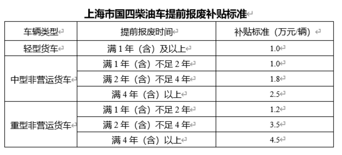 近日,上海市生态环境局发布《上海市鼓励国四柴油车提前报废补贴实施办法(征求意见稿)》,对原有国四柴油车淘汰更新补贴政策进行优化调整。