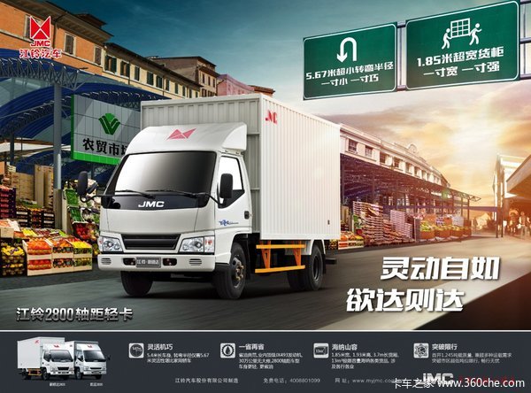 山不在高,有仙则名;车不在大小,适合才是王道!江铃2800轴距轻卡,实力派干将,灵动自如,欲达则达,满足你运营过程中的各种需求!