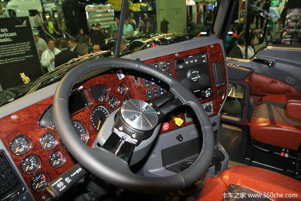 在美国的长头车上面,中控台几乎都是采用的仿桃木设计,大量的覆盖中控台,让驾驶室的整体显得更加奢华。