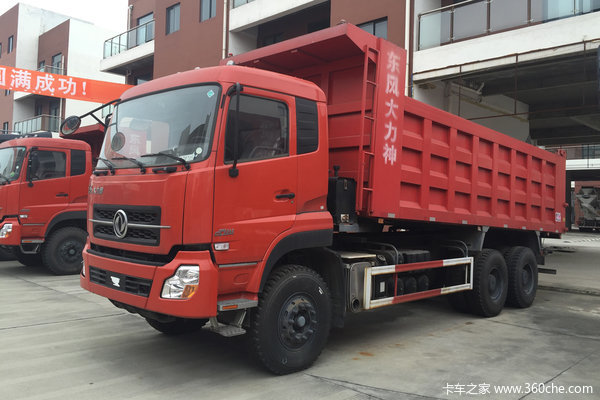 此次促销的车型为东风商用自卸车。装配D310平头标准顶驾驶室。动力方面,搭载雷诺dCi350-40发动机,输出功率为350马力。符合国四排放。匹配12挡陕齿12JSD160T变速箱。头档速比15.53。感兴趣朋友欢迎致电经销商。