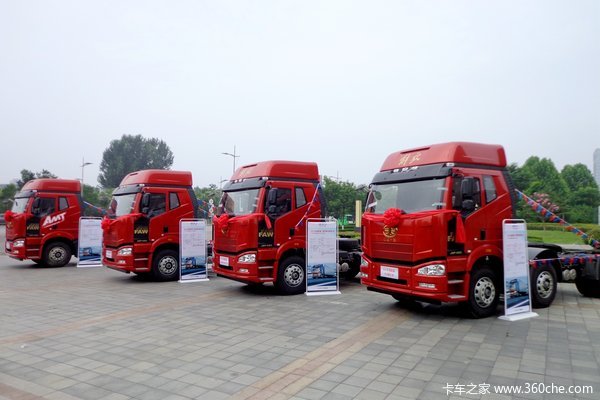 本次推介会展出了J6P领航版的国五产品、AMT自动挡等高端牵引车