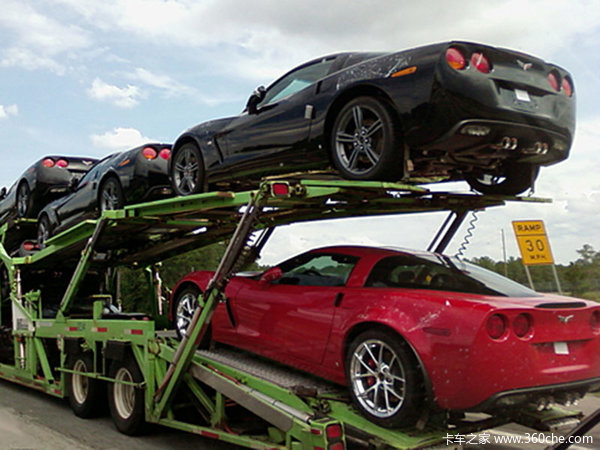 除了标志醒目、全封闭的箱货之外,一些厂家也选择了最普通、最经济的运输方式,比如上图中这满满一车的克尔维特,就与普通家用轿车的运输方式没有区别,不过不知道这一车交了多少保险?