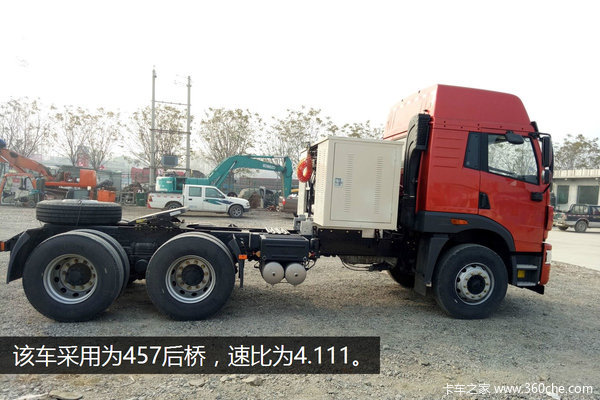 针对用户的不同需求,并让自身天然气产品在安全性、环保性、续航里程上都更具竞争力,青岛解放各个系列都推出了LNG牵引车,下面我为大家推荐一款解放悍V 6×4车型。