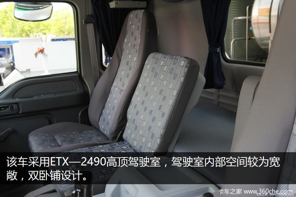 欧曼ETX采用ETX—2490高/平顶驾驶室,驾驶室内部空间较为宽敞,搭载潍柴发动机。车架采用高强度材料,有效提高了底盘的承载能力,提升了整车的装载能力。