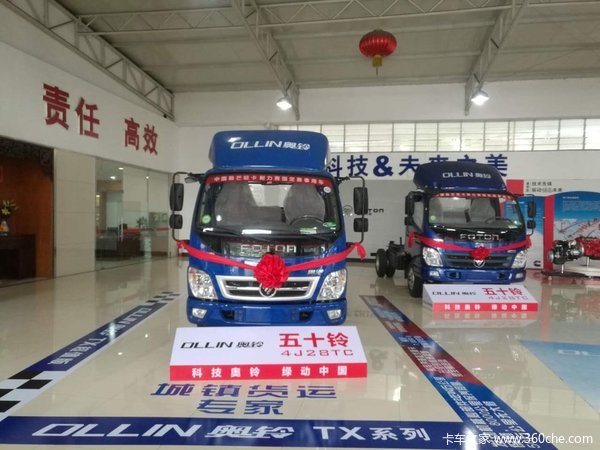 福田 奥铃TX 超值版 110马力 4.2米单排厢式轻卡(气刹)底盘(BJ5049XXY-AA)装配单排驾驶室,动力方面,搭载福田环保动力4J28TC发动机,输出功率为110马力,符合国四排放,匹配江齿JC528变速箱,档位数为5档,采用3010KG后桥,速比为6.142,对该款新车有购买意向的用户欢迎致电经销商。