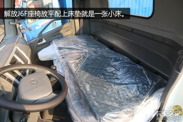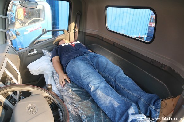 对于单排轻卡而言,其坐垫宽度一般都是特别的宽,如果想睡得再舒服点的话怎么办呢?解放J6F轻卡给出了答案,单排轻卡配了一个床垫,副驾驶位置能够完全放平,主驾驶位置头枕设计为可拆卸式,实现了放翻。