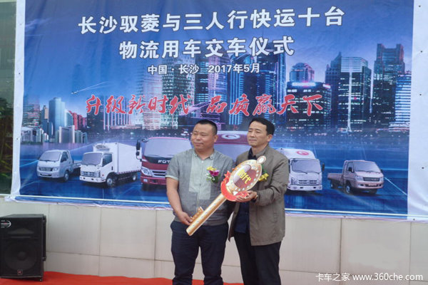 【卡车之家 原创】2017年5月4日,长沙市驭菱汽车销售有限公司与三人行快运公司在湖南省长沙市星沙中南汽车世界A3区13号,隆重举行时代康瑞H系列十台物流用车交车仪式。