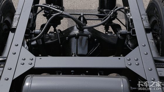 后桥则是采用解放自主研发的295车桥,承载吨位达5-6吨,前后均采用少片簧钢板悬架设计。车架则是锰钢材质的直通式设计,相比较前宽后窄车架的设计,直通式车架更加牢固耐用。