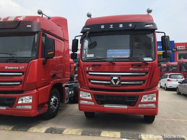 徐工 漢风G5重卡 350马力 6X4牵引车(高顶)装配高顶驾驶室,动力方面,搭载潍柴WP10.350E53发动机,输出功率为350马力,符合国五/欧五排放,匹配法士特12JSD160TA变速箱,档位数为12,采用485后桥,速比为4.11,对该款新车有购买意向的用户欢迎致电经销商。