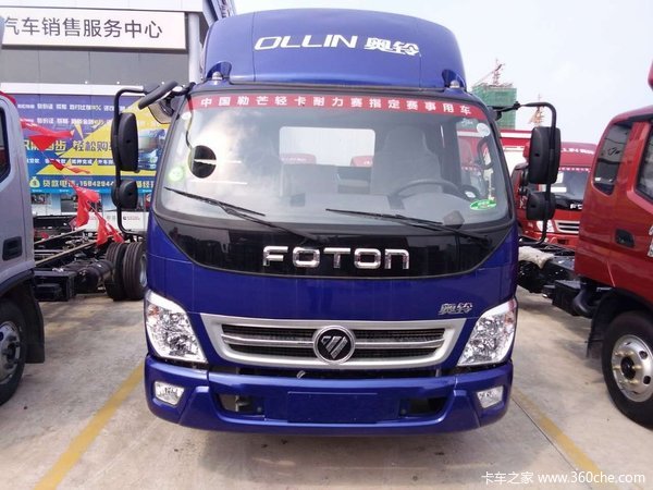 福田 奥铃TX 110马力 4×2 排半载货车底盘 装配排半驾驶室,动力方面,搭载福田动力4J28TC发动机,输出功率为110马力,符合国四 排放,匹配WLY5T60变速箱,档位数为5,采用5T后桥,速比为6.142,另外,该车还配备金属漆,原厂空调,电动门,中控锁,气刹,排气制动,7.00R16钢丝胎等,对该款新车有购买意向的用户欢迎致电经销商。