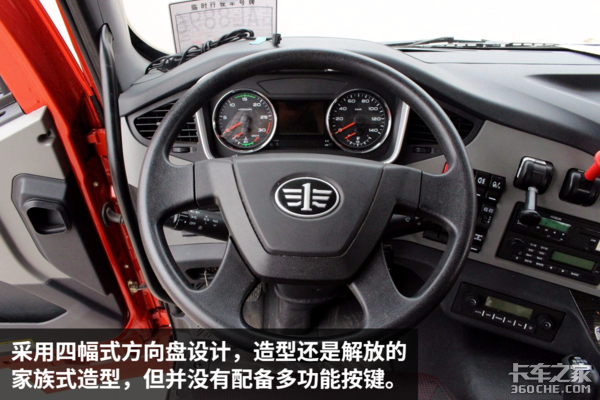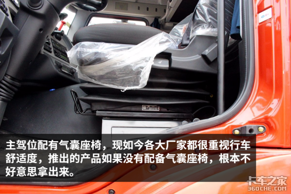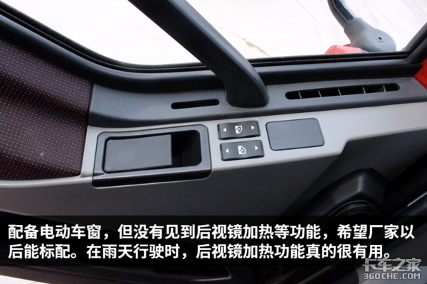 在内饰方面,该车整体看起来还是比较不错的,当然个别地方还是有待升级,比如:后视镜加热、多功能方向盘等功能,现如今这两个功能在高端重卡上面,基本都已经成为了标配。