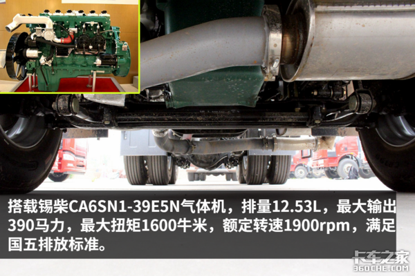 在配置方面,该车采用锡柴13升气体发动机、一汽12挡变速箱、457后桥(速比4.11)的动力链,比较适合长途标载运输。另外,因为该车拥有危险品运输资质,所以主要会用来进行危险品运输。
