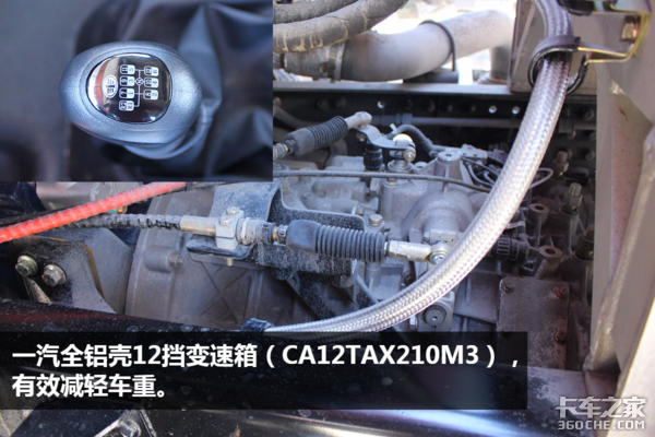 这款JH6搭载潍柴13L天然气发动机(WP13NG430E52)+一汽12挡全铝壳变速箱(CA12TAX210M3)+457冲焊桥,在1100-1400rpm爆发最大扭矩2000牛米。变速箱最高12挡速比为0.783,轮胎规格为12R22.5,我们通过卡车之家车速计算器计算,理论上变速箱为12挡时,发动机转速1100rpm时车速为77km/h,转速1200rpm时车速为84km/h,1300rpm时车速为91km/h,1400rpm时车速为98km/h,数据表明此车适合长途高效物流的配送。