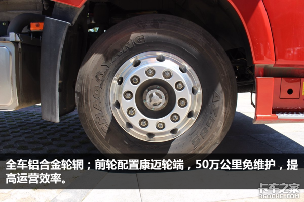 这款JH6在轻量化上做的处理是:单层车架、少片簧设计、铝合金气瓶及支架、铝合金轮辋、全铝变速箱、铝合金储气筒,使得一款天然气燃料的牵引车头自重仅为9.1吨。虽然价格上会比普通车型稍贵,不过通过新能源燃料的使用和轻自重的优势,每年可以比普通车型赚更多的钱,选择购车划算还是选择用车划算,我把这个问题抛给卡友们自己选择。