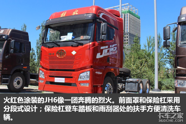 外观方面这款JH6依旧是家族式造型,无论正面还是侧面辨识度都非常高,即使百米开外也能一眼辨出此车姓甚名谁,除了前面罩的“LNG”标志告诉我们它有一颗天然气的“心”之外,与普通版本的JH6无异;虽然驾驶室很高,但是车门开度越大,越方便司机上下车;解放巧妙地把握了国人的心理:红色象征着喜庆,所以新款车型上市还是以红色亮相。