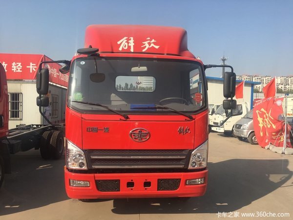 解放 虎VH 重载版 141马力 4.2米单排栏板轻卡底盘装配虎VH驾驶室(双卧铺+座椅头枕可拆卸)驾驶室,动力方面,搭载福田康明斯ISF3.8s5141发动机,输出功率为141马力,符合国五/欧五排放,匹配万里扬WLY6TS55变速箱,档位数为6,采用1080铸造桥后桥,速比为4.875,另外,该车还配备定速巡航、ABS、中控锁、倒车雷达,对该款新车有购买意向的用户欢迎致电经销商。